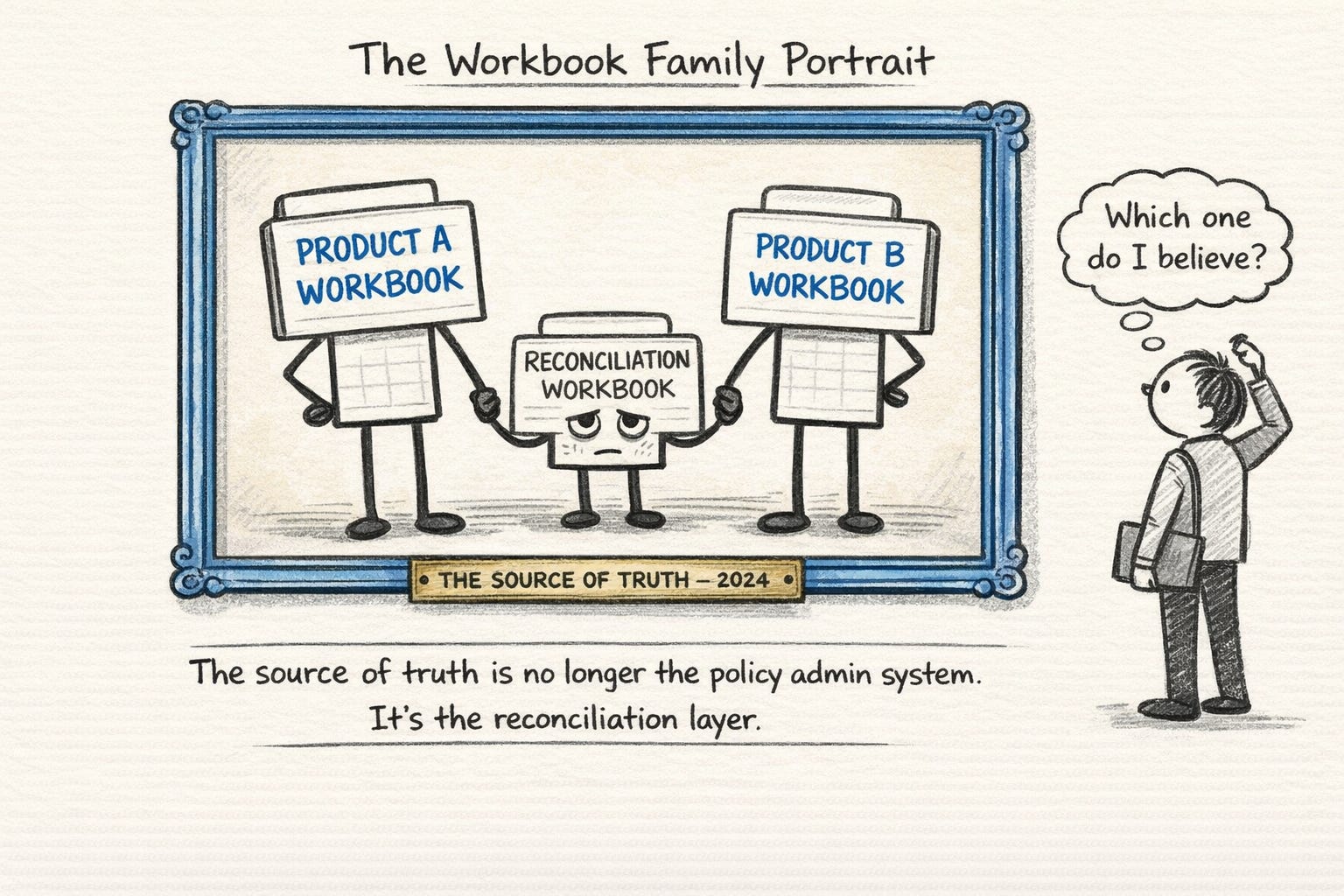 The “source of truth” is no longer the policy admin system. It’s the reconciliation layer: a series of manual processes that transform system data into reportable data. The monthly close, which used to be a straightforward export-validate-submit process, becomes an export-transform-validate-reconcile-re-key-re-validate-submit process. Each step introduces latency. Each step introduces error potential.
