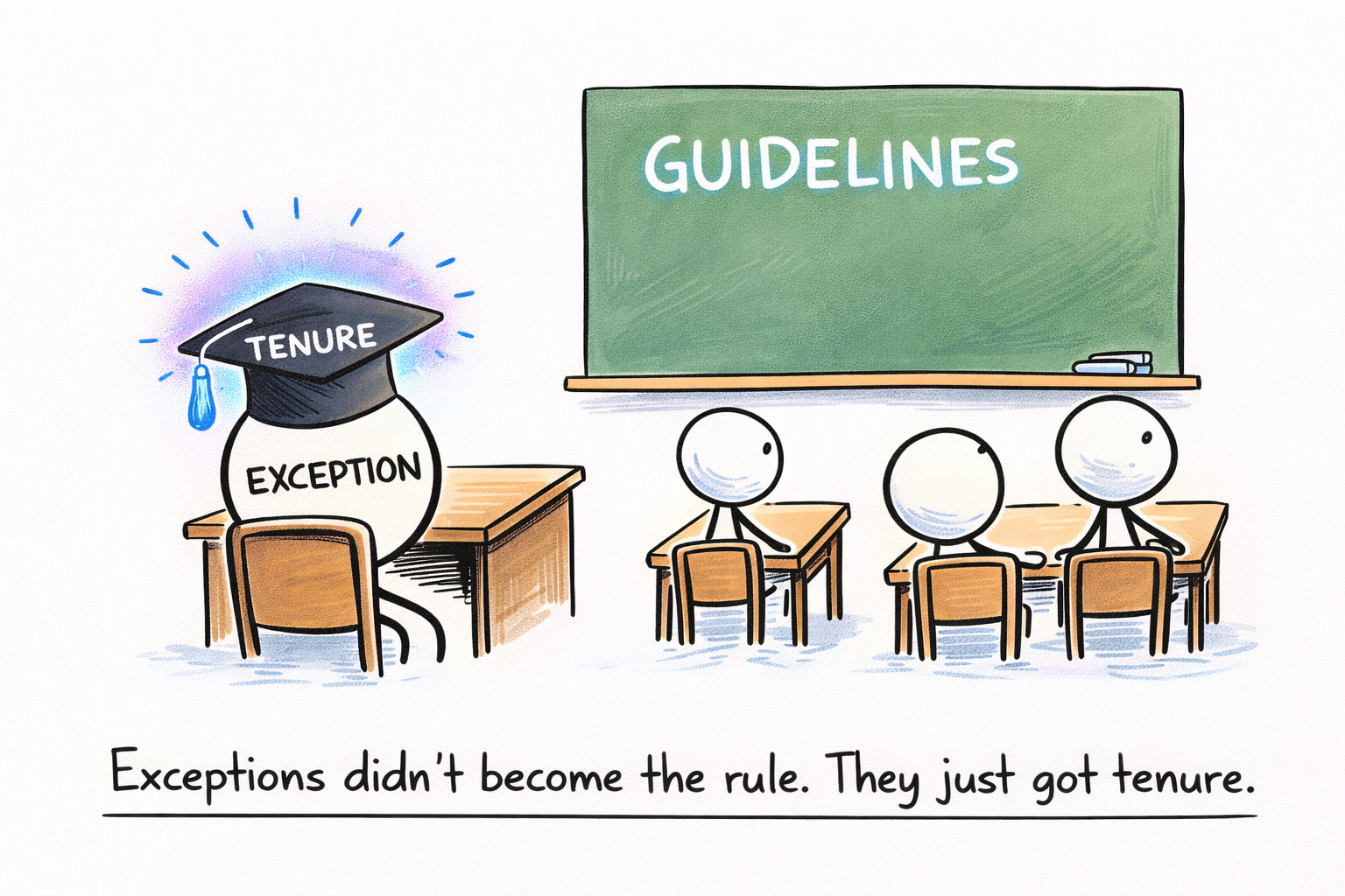 Guidelines exist, but guidelines require interpretation. Referral thresholds that made sense for Product A don’t map cleanly to Product B. Edge cases multiply. Exceptions that would have been escalated now get handled directly, because escalation means adding to the senior underwriter’s already-overwhelming queue. The path of least resistance becomes the default path.