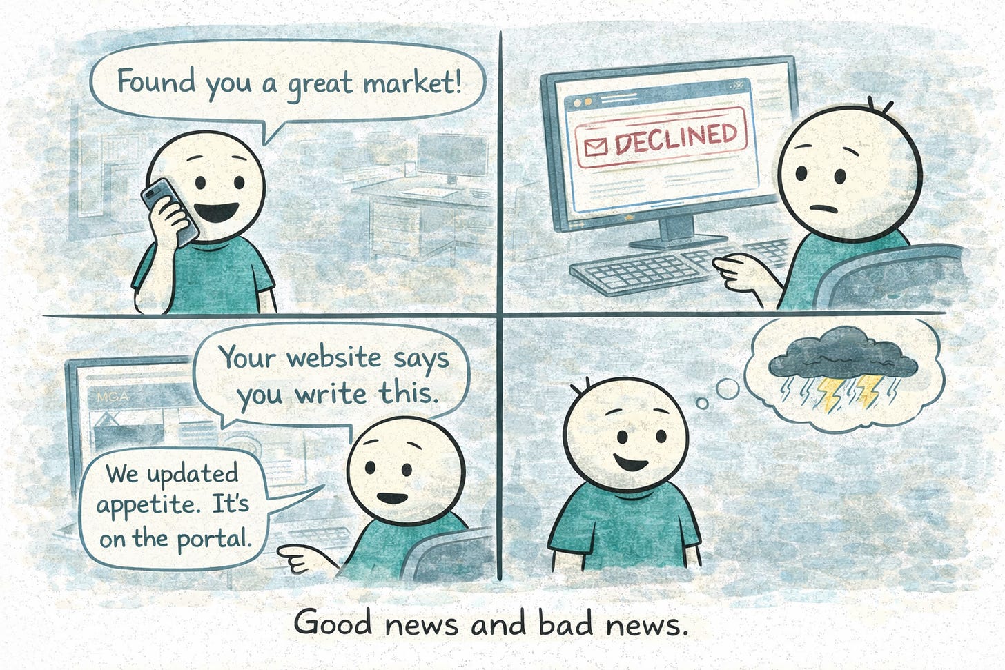 When a program creates a surprise, it doesn’t stay between you and that broker. It becomes a story. “They changed appetite mid-bind.” “Claims took four months.” “I had to explain a declination I didn’t see coming.”