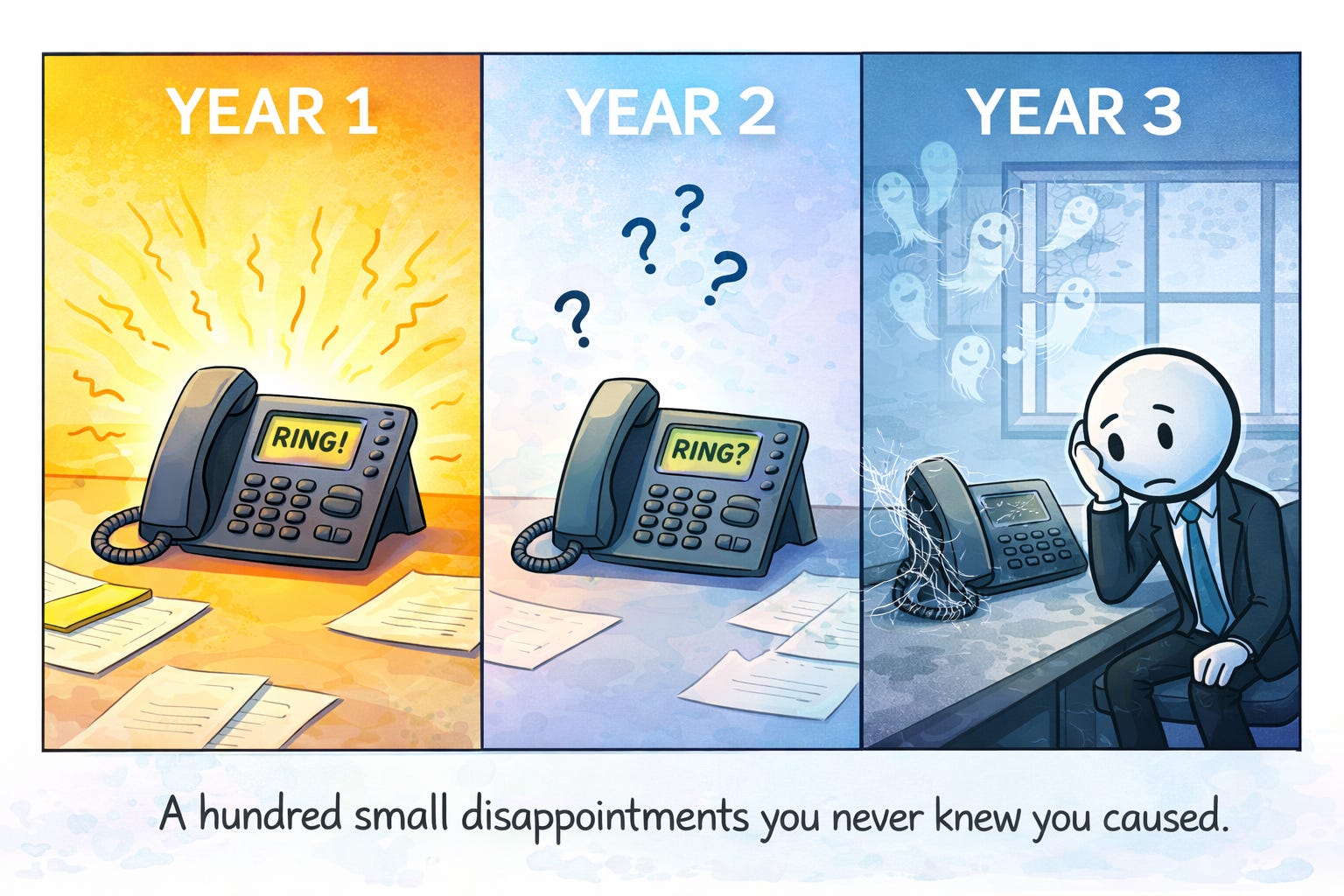Otherwise, you’ll wake up one day wondering why the phones stopped ringing—and the answer will be a hundred small disappointments you never knew you caused, plus one big missed opportunity you never saw.